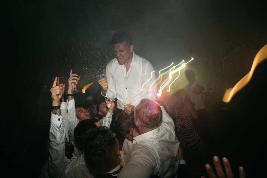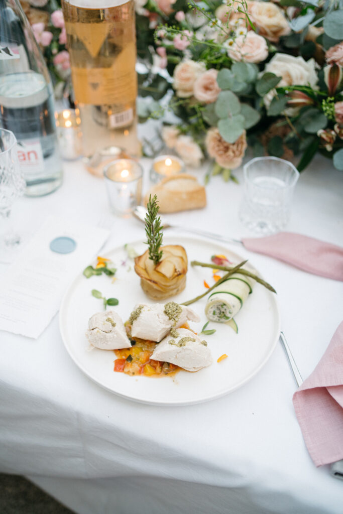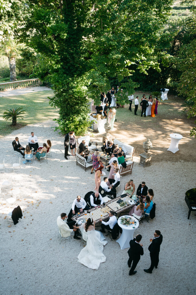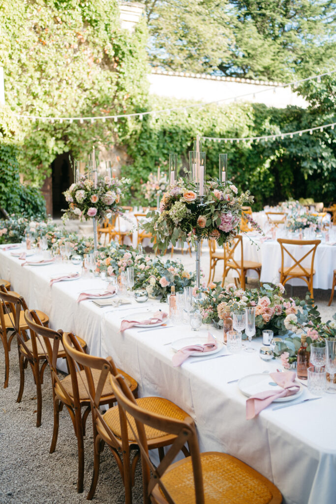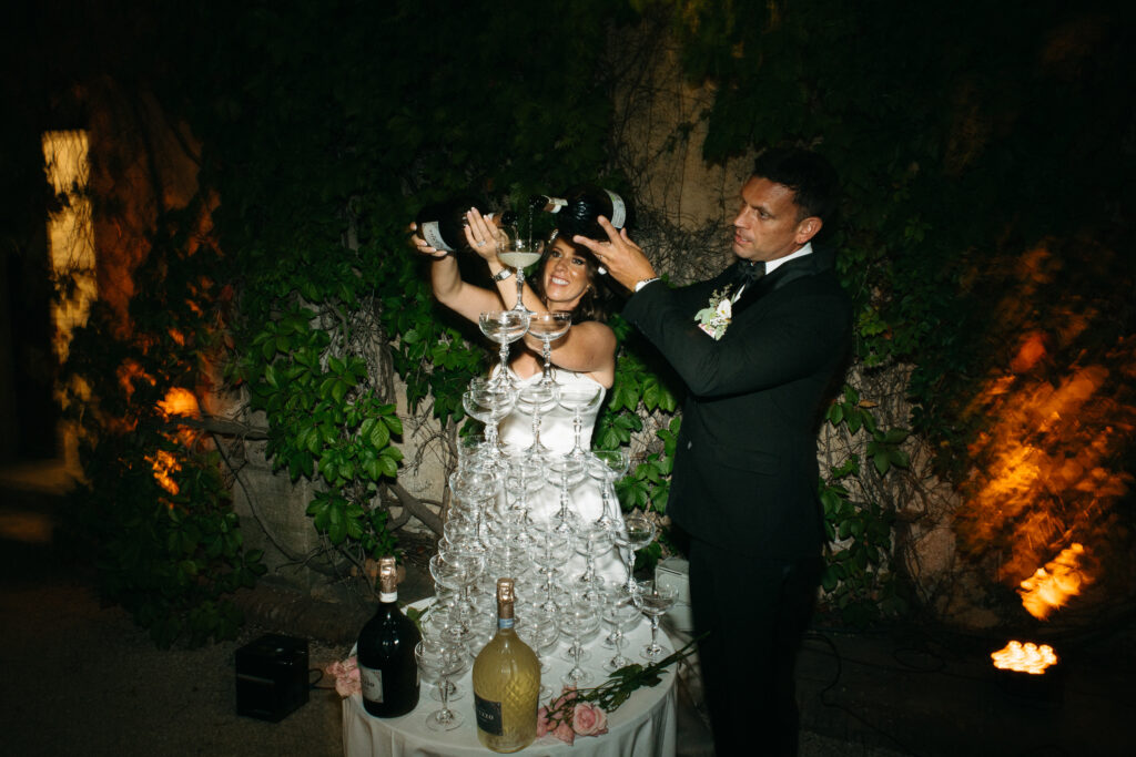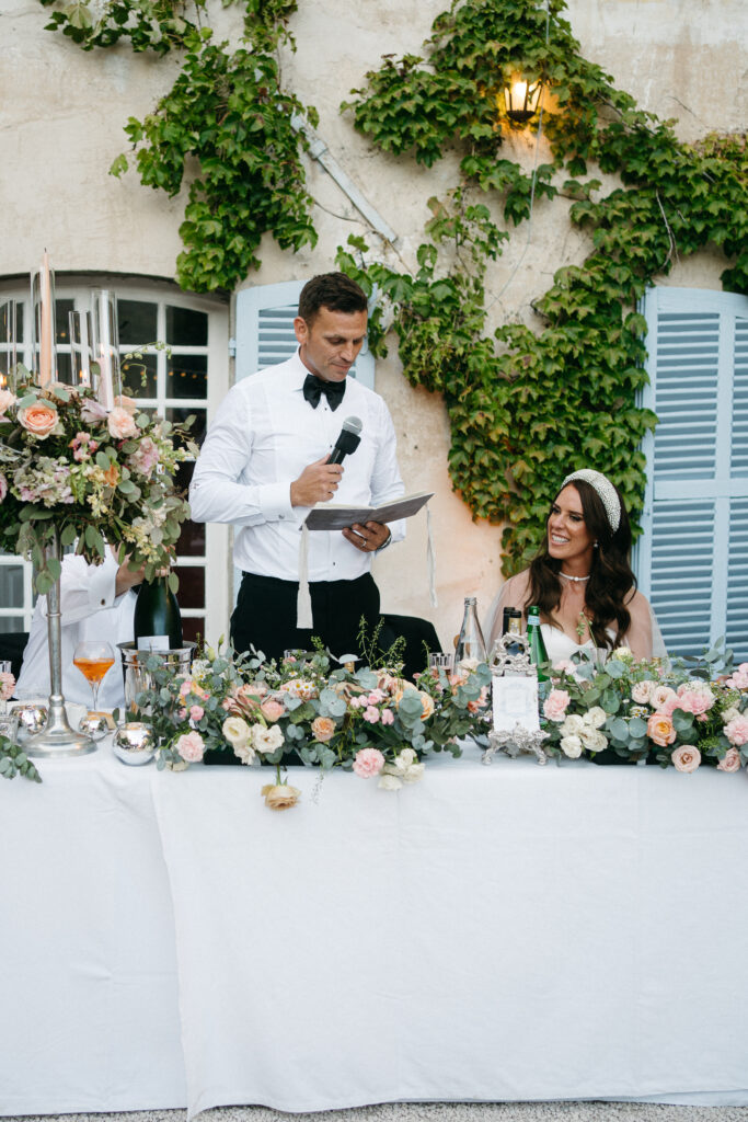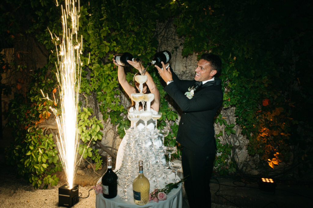 La journée a culminé avec un dîner somptueux sous le ciel étoilé de Provence. Les tables élégamment dressées, éclairées par des guirlandes lumineuses, ont créé une atmosphère intime et chaleureuse. Les convives ont savouré des mets délicieux tout en échangeant des rires et des anecdotes, tandis que le château en arrière-plan semblait veiller sur cette scène de bonheur partagé.