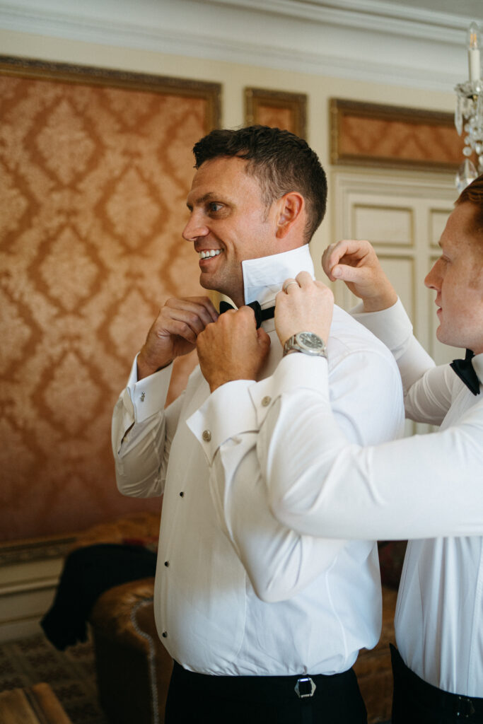 Le ciel d’un bleu profond et le soleil radieux ont apporté une luminosité naturelle parfaite pour chaque cliché. Des instants volés entre les ruelles du château aux échanges de vœux émotionnels, la journée s’est déroulée sous une lumière douce et enveloppante, permettant de capturer la beauté pure de l’amour entre Michaela et Stevie.